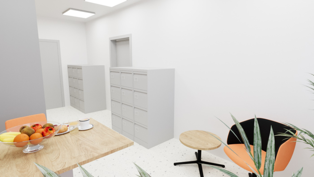Funkčná dispozícia: Ambulancia je rozdelená na vyšetrovaciu časť, administratívnu časť a čakací priestor. Každá zóna má jasne určenú funkciu a dostatok úložného priestoru.
