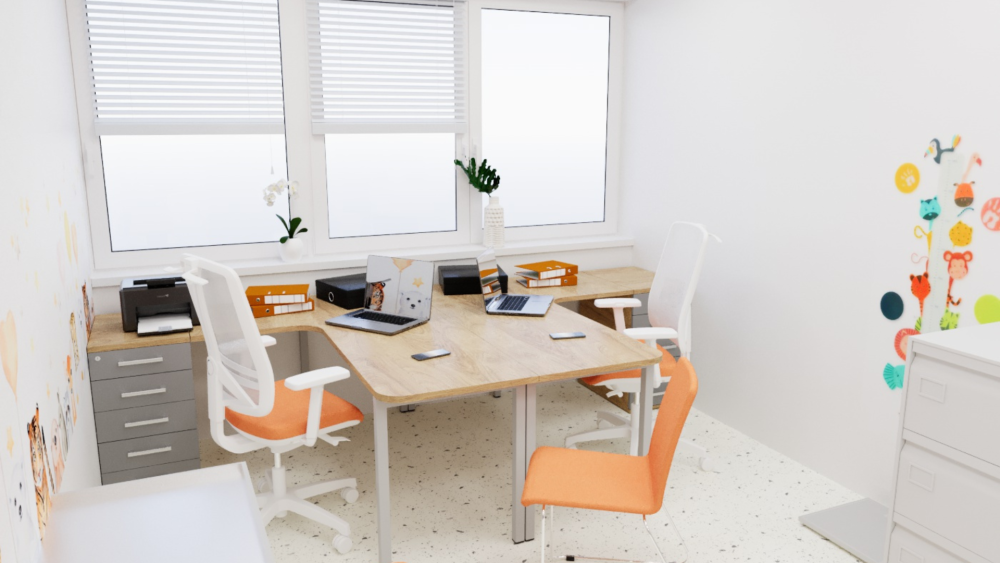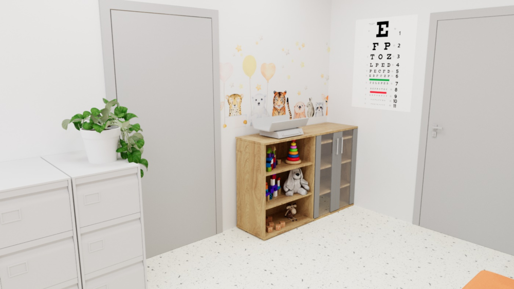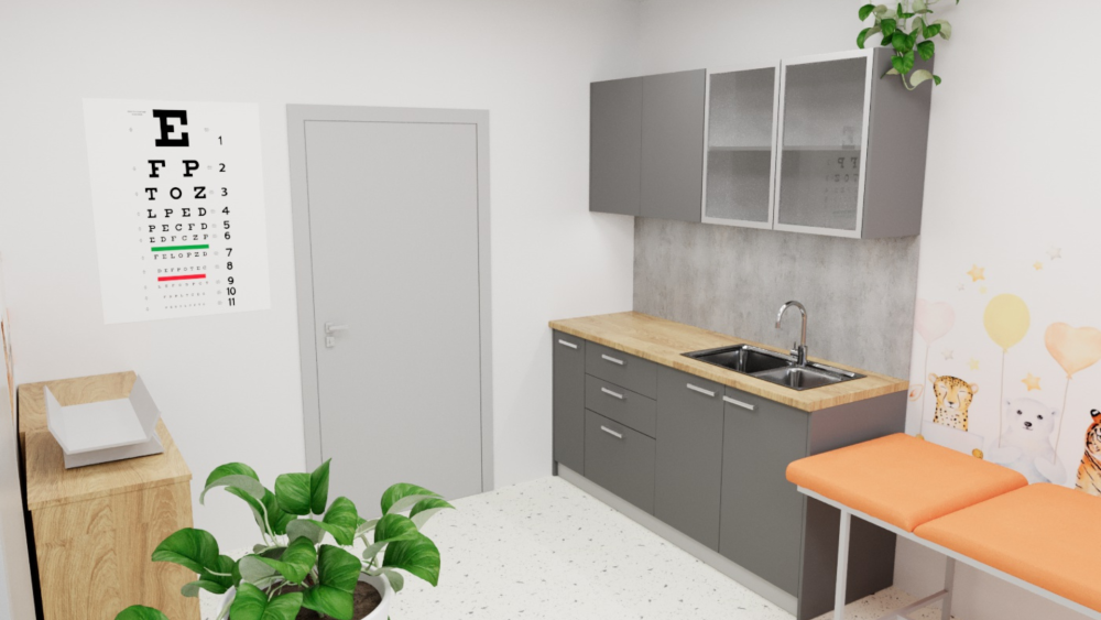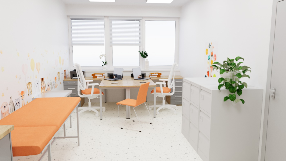 Pri projekte Doktorka Deniska sme mali za úlohu vytvoriť priestor, ktorý spája profesionalitu s útulnou atmosférou, kde sa malí pacienti aj ich rodičia cítia príjemne od prvého momentu. Cieľom bolo zariadiť modernú detskú ambulanciu, ktorá nebude pôsobiť sterilne ani odmerane, no zároveň si zachová všetky funkčné a hygienické štandardy. Klientka si želala, aby interiér pôsobil svetlo, čisto, no s hravými detailmi, ktoré odvedú pozornosť detí od strachu z vyšetrenia.