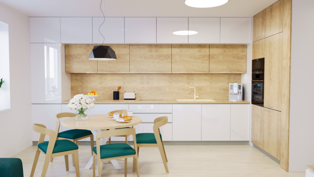 Kuchyňa je stelesnením jednoduchosti a funkčnosti. Svetlé povrchy spolu so drevenými detailmi dotvárajú pocit čistoty a prírodného prepojenia. Naša klientka si priala kuchyňu, kde sa každý detail – od výberu materiálov až po ergonomické riešenia – snúbi s jej láskou k vareniu a pohodliu.