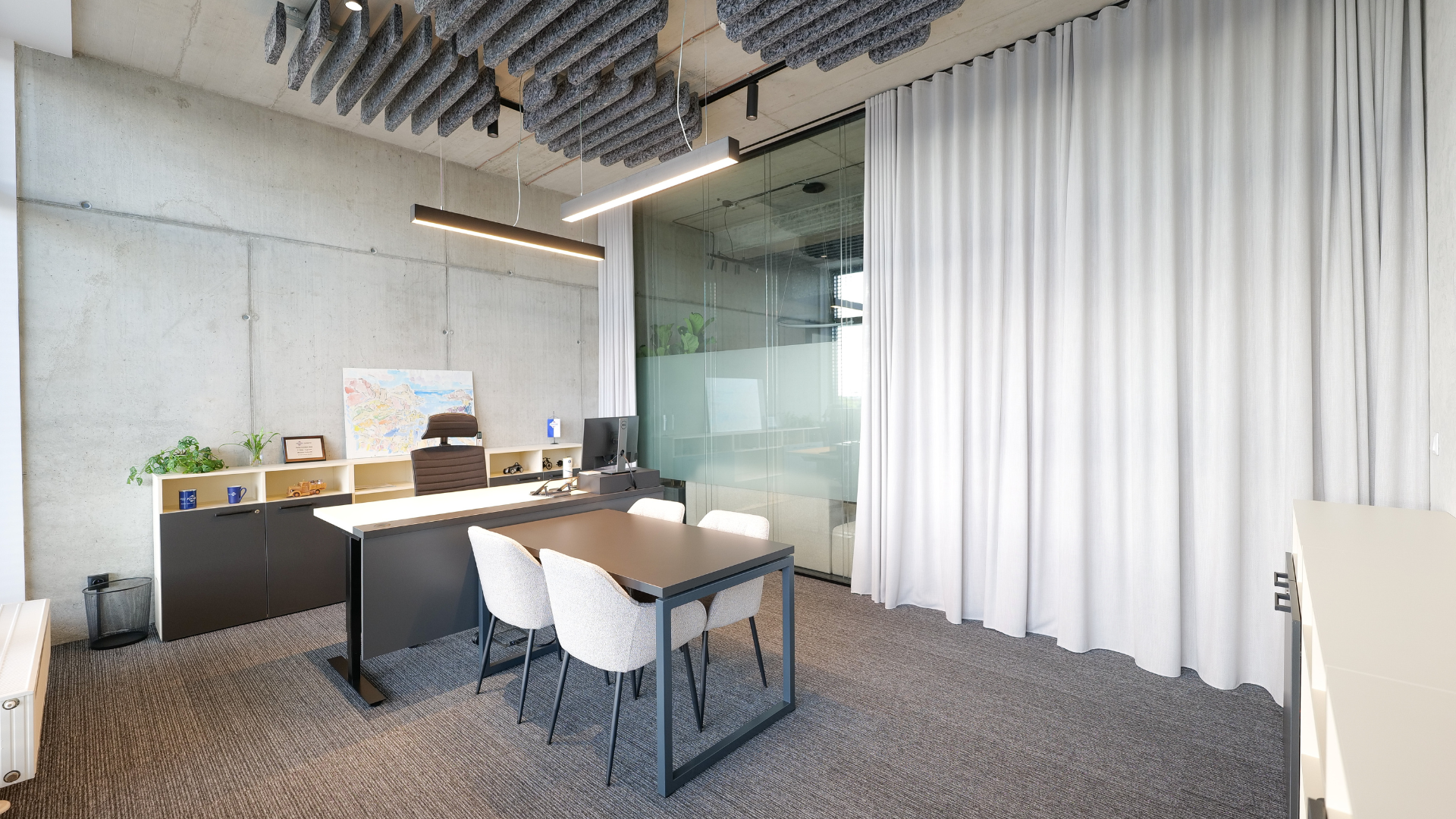 Moderné kancelárie často trpia nedostatkom súkromia a akustického pohodlia. Pre Fuchs Oil sme navrhli riešenia, ktoré eliminujú rušivé faktory a podporujú sústredenie. Použitím špeciálnych materiálov na steny a stropy sme dosiahli optimálnu akustiku v každej zóne, či už v otvorených priestoroch, alebo v súkromných kanceláriách.