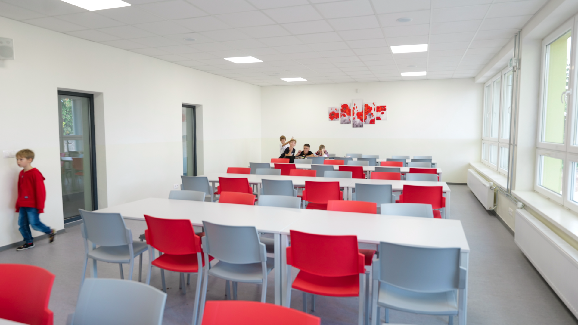 Jedáleň nemá byť len hala so stolmi. Je to priestor, kde sa deti učia spolunažívať, debatovať a občas aj tajne vymieňať desiate. Interiér musí byť ľahký, umývateľný a odolný, no zároveň vizuálne príjemný.